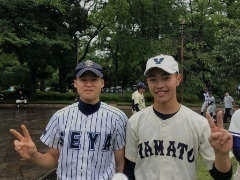 | ★横浜高等学校(3年ぶり19回目) 三村健太郎君 2年 (令和2年卒業・36期) また、元横浜青葉ボーイズの監督で現在鹿島学園部長を務められている岡部真洋さんはじめ、社会人OBの方々の母校も初出場を果たしました。 ★鹿島学園(初出場) 12期 岡部真洋さん(鹿島学園部長) 25期 臼井亮太さん 27期 和田翔太さん |