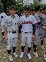 | ★東京農業大学北海道オホーツク大学(北海道野球連盟) 7年ぶり3回目 木村賢登さん2年(H29年卒・33期生) ★神奈川大学(神奈川大学野球連盟)11年ぶり8回目 丹澤海輝さん4年(H27年卒・31期生) 籾山寛太さん3年(H28年卒・32期生) ★國學院大學久我山高等学校 37年ぶり2回目 中野統互さん2年(R2年卒・36期生) |